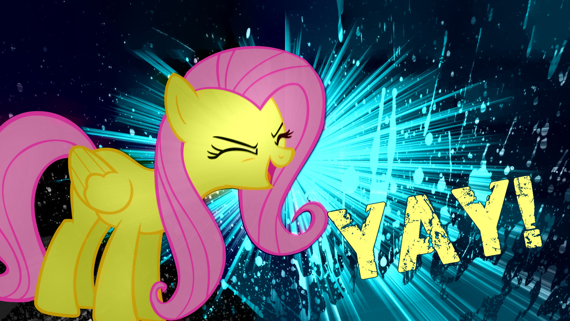Description: A cartoon pony with a pink mane and yellow hair and a blue background with a yellow and pink name.