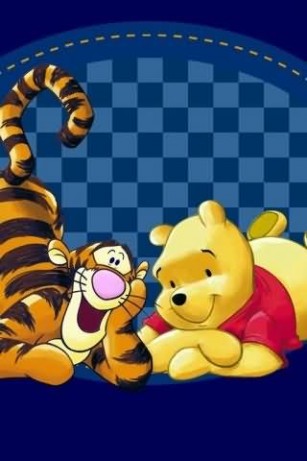 Description: A cartoon winnie the pooh and tigger laying down together on a checkered background with a blue background.