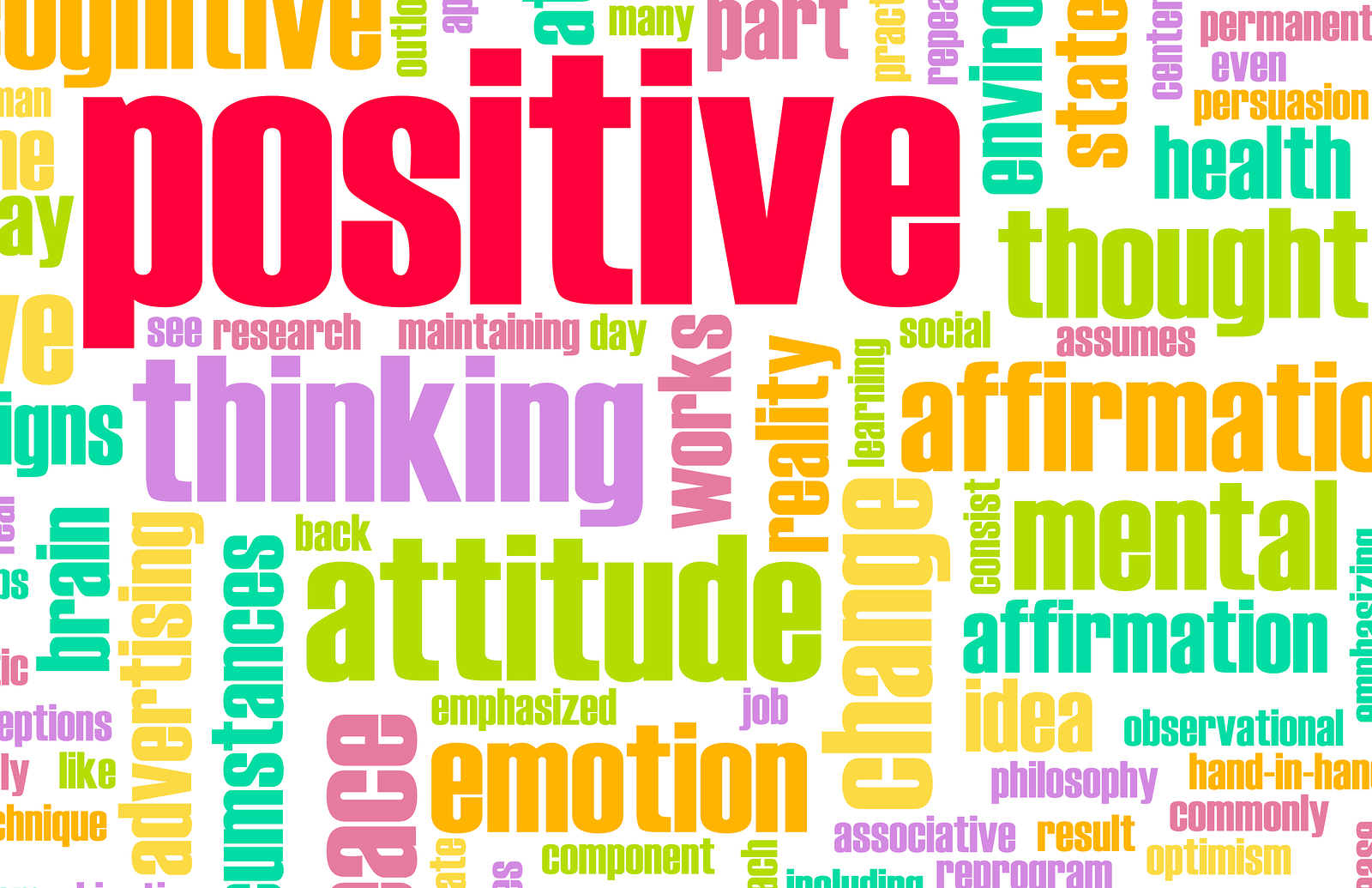 Description: A word cloud with words related to positive thinking and attitude on it.