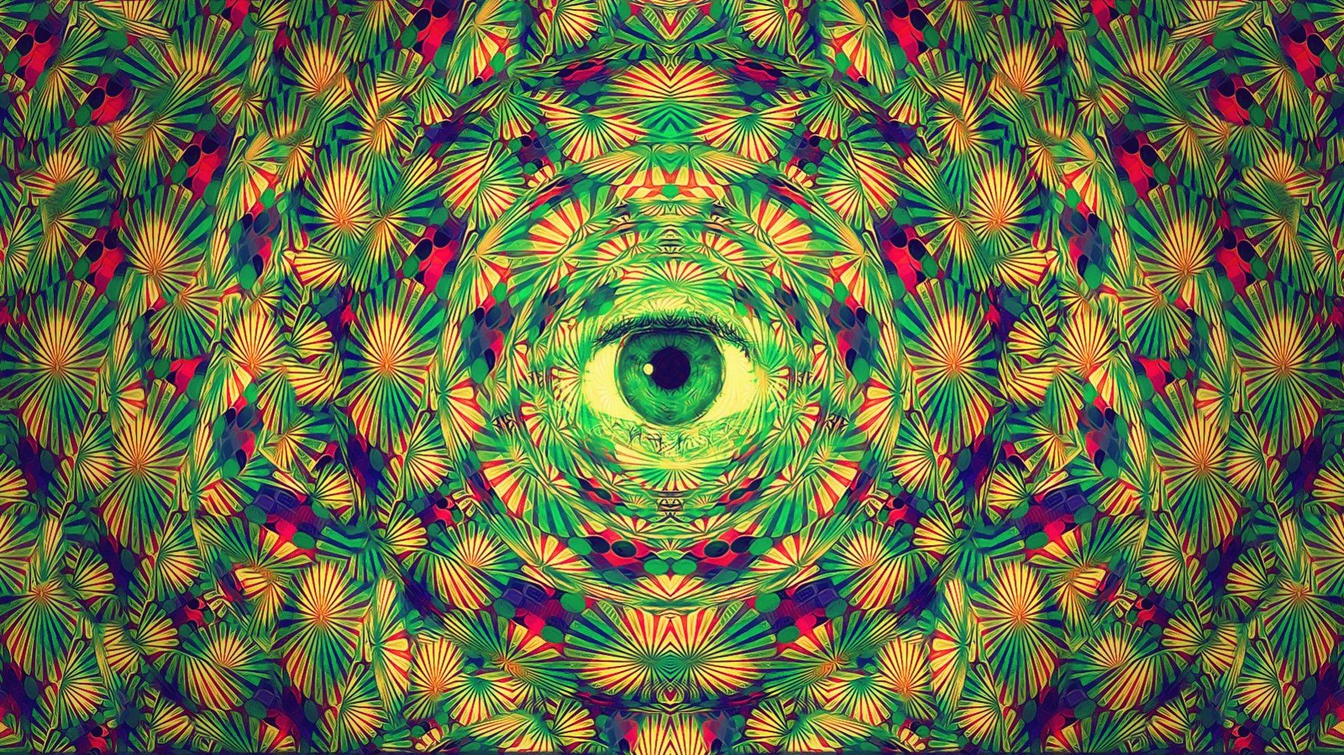 Description: A psychedelic psychedelic image with an eye in the center of the image.