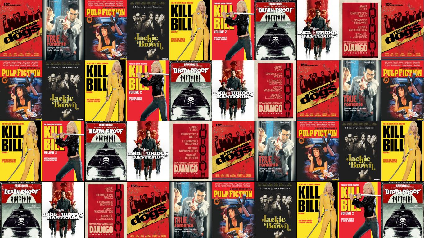 Description: A collage of movies and posters with the characters of the film pulp club on them.