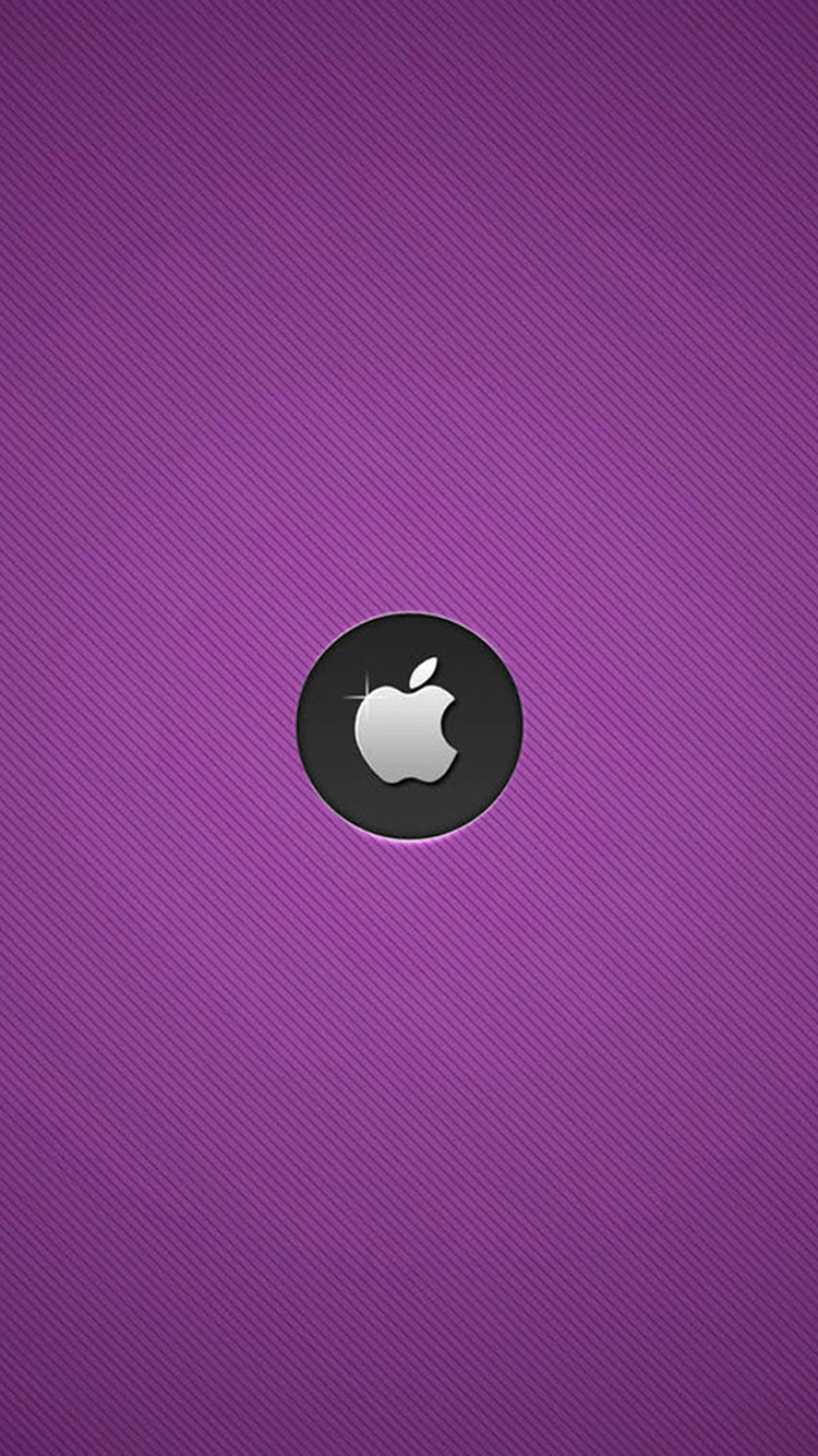 Description: A purple apple logo on a purple background with a black circle on the bottom of the image and a black apple logo on the bottom of the image.