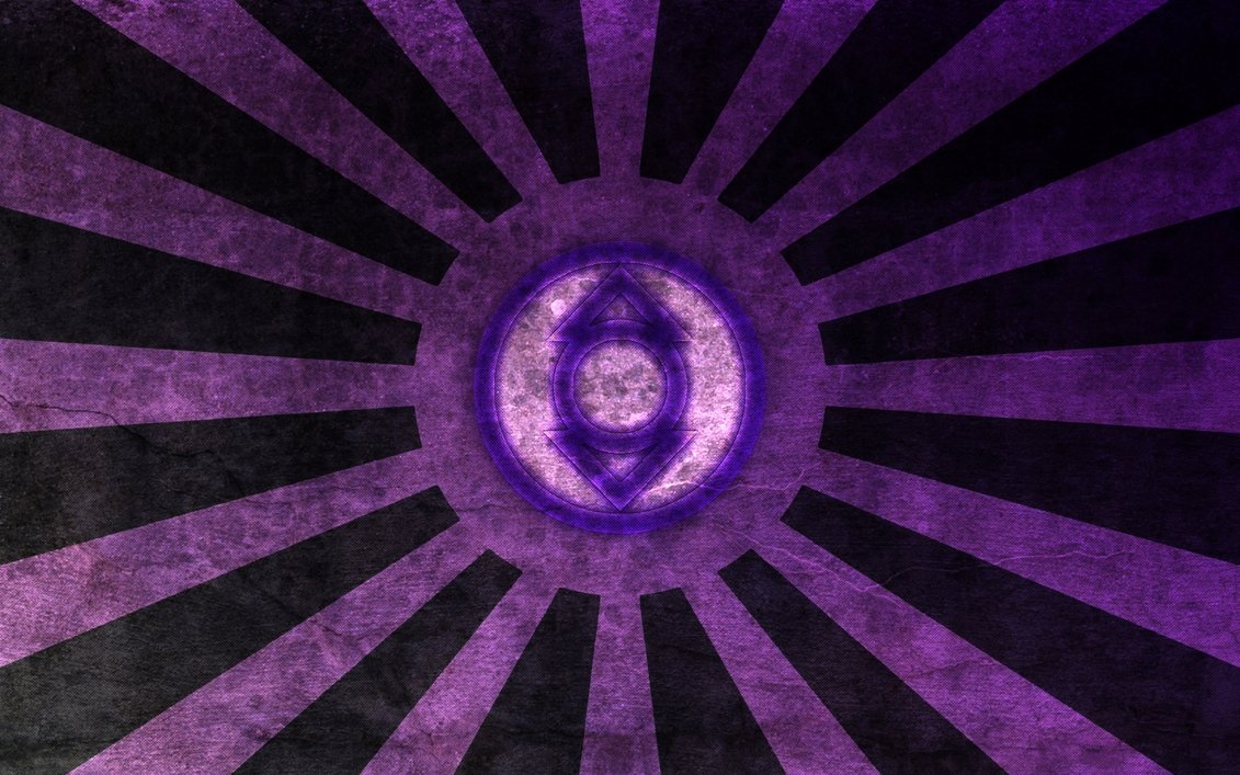 Description: A purple and black background with a circular design in the center of it.