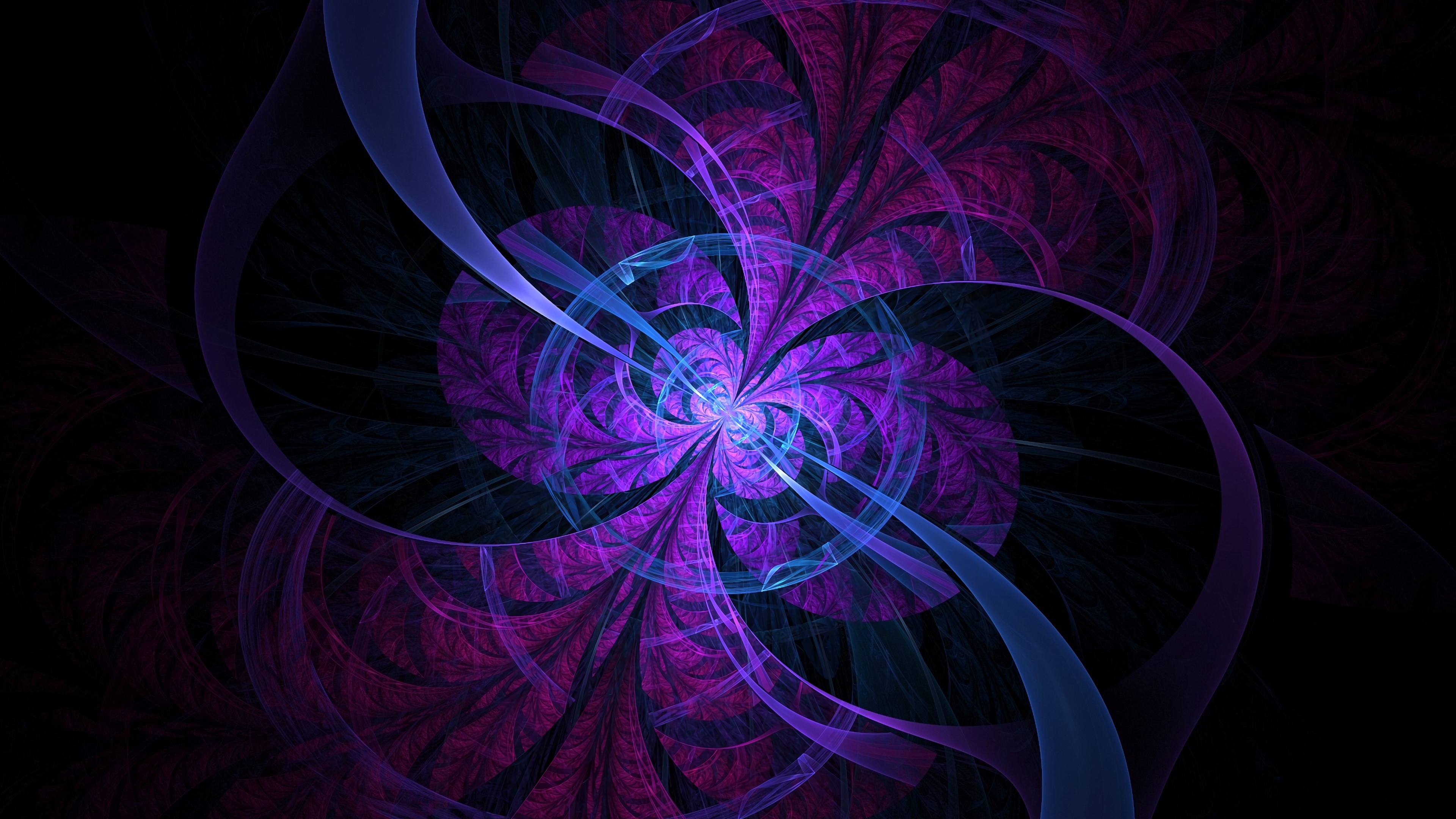 Description: A purple and blue abstract design with a black background and a blue and purple swirl on the center of the image.