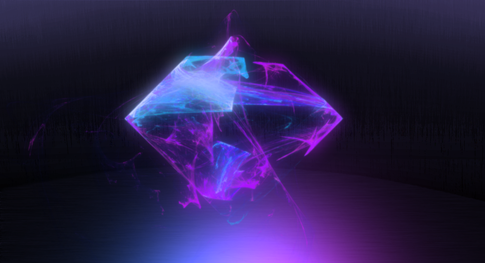Description: A purple and blue diamond on a black background with a light reflection on it's surface and a black background.