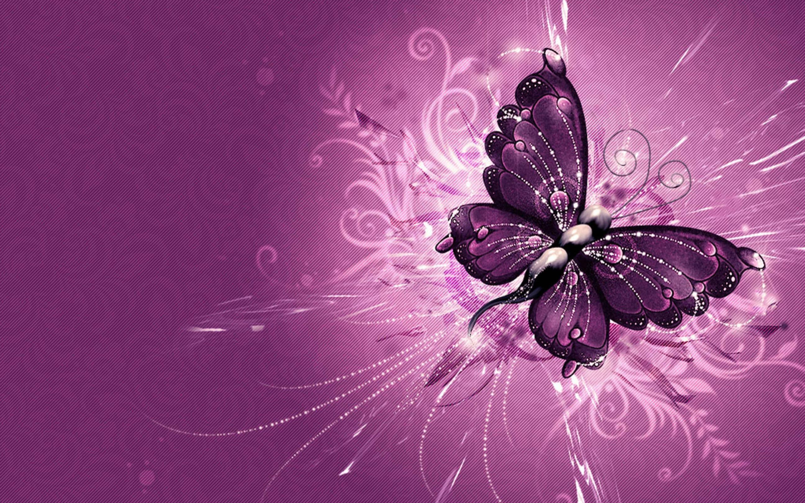 Description: A purple butterfly with swirls and bubbles on a purple background with a swirl pattern and a white center.