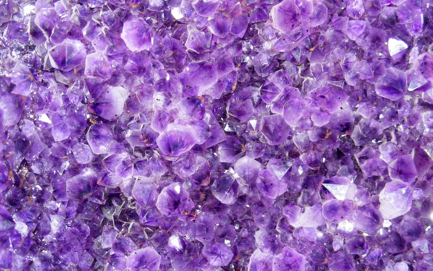 Description: A close up of a purple rock with lots of crystals on it's surface and a purple background.