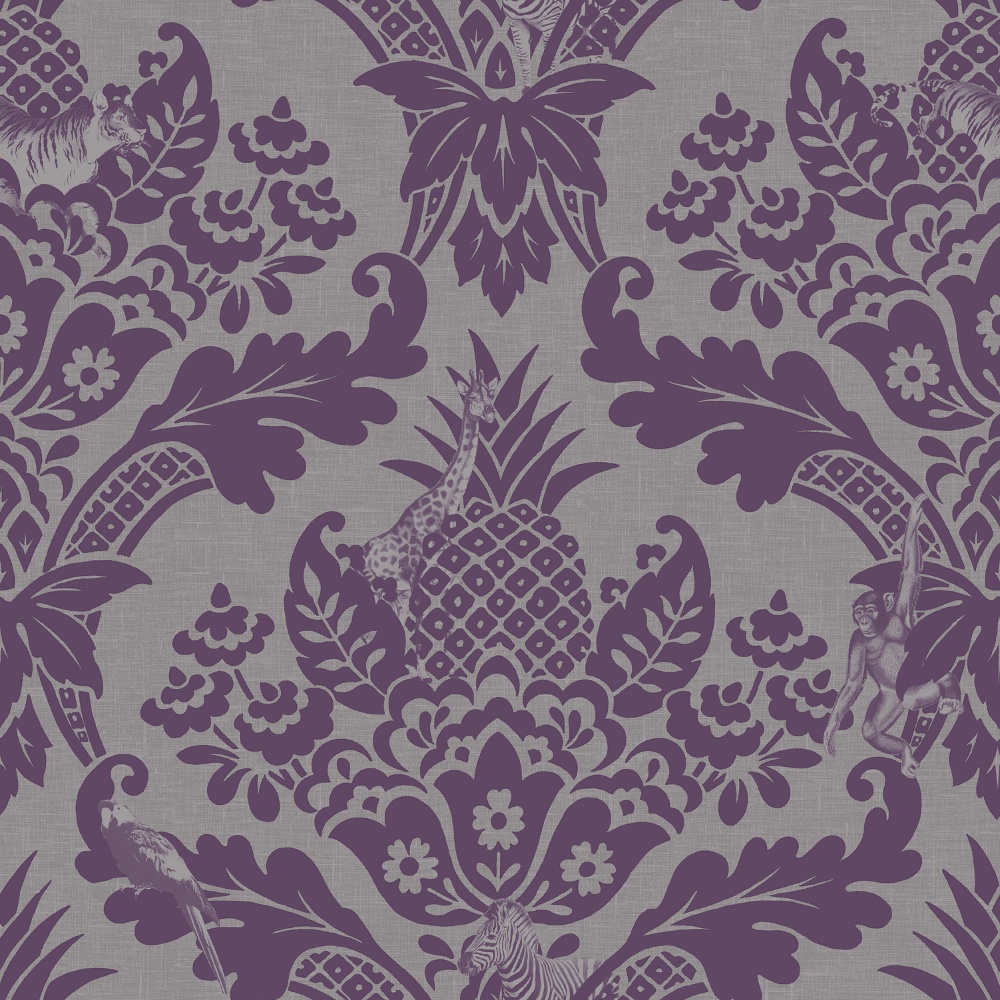 Description: A purple and grey wallpaper with a floral design on it's side.