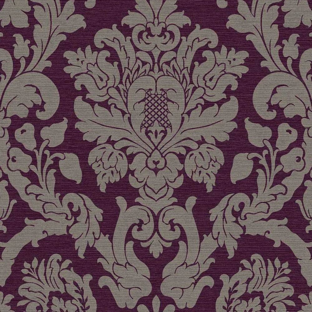 Description: A purple and grey wallpaper with a floral design on it's side.