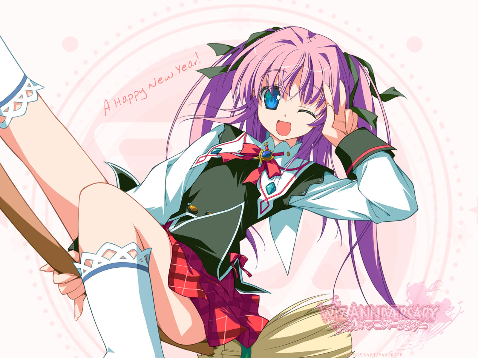 Description: A girl with purple hair and a black vest is holding a white umbrella and a pink background with a pink circle.