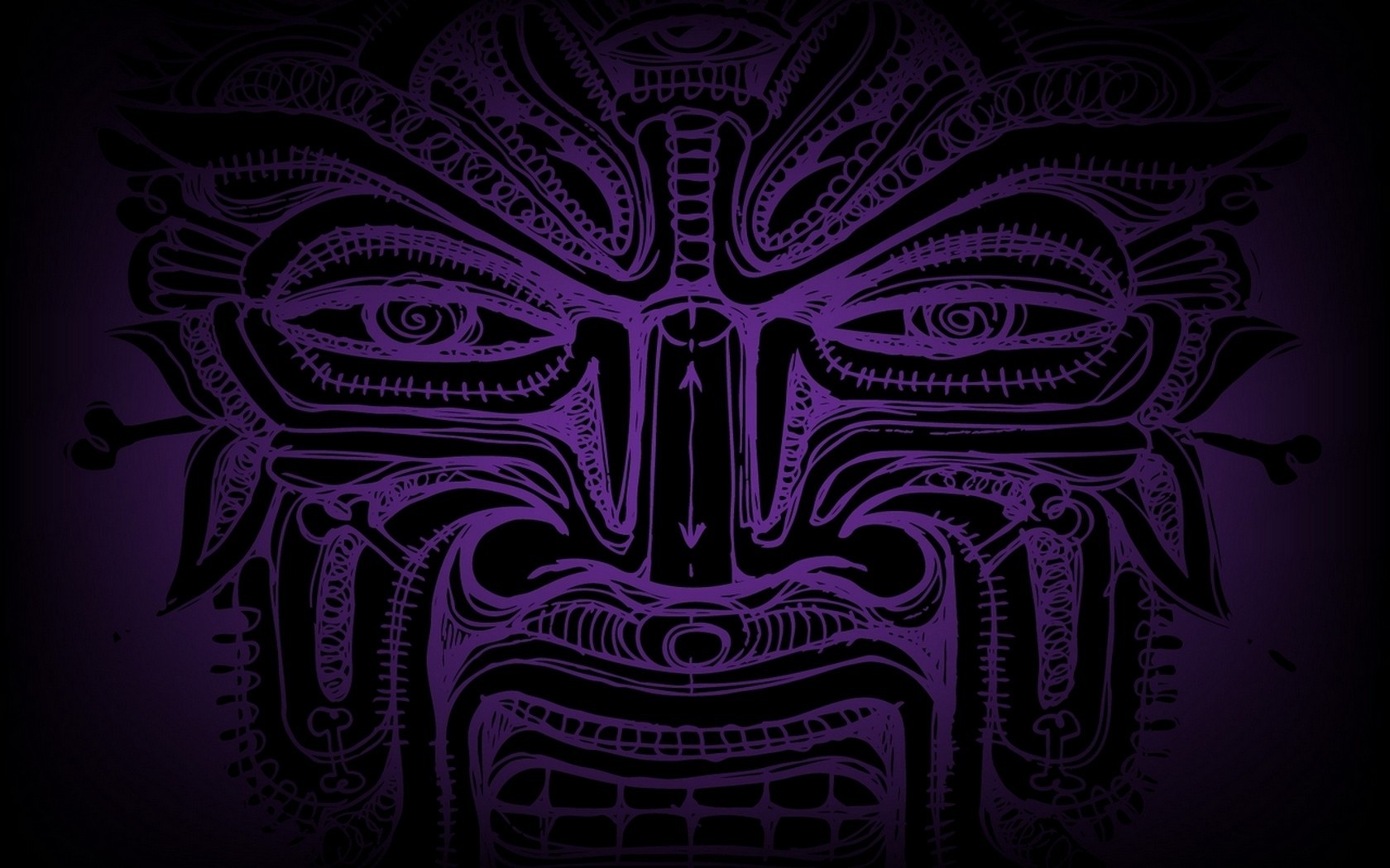 Description: A purple mask with a face on it's face and eyes are drawn in the style of a demon.