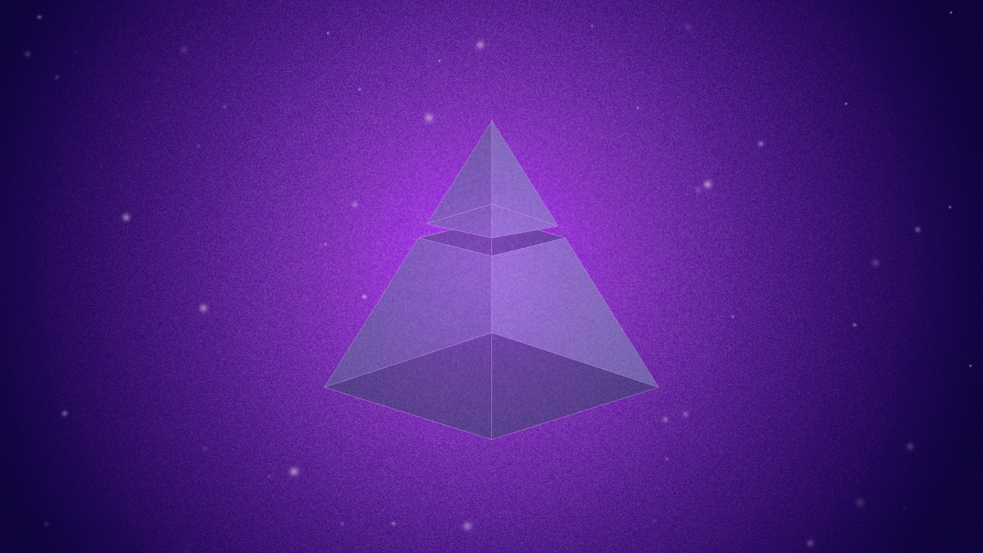 Description: A purple object with a purple background and stars in the sky above it is a purple pyramid with a black top.