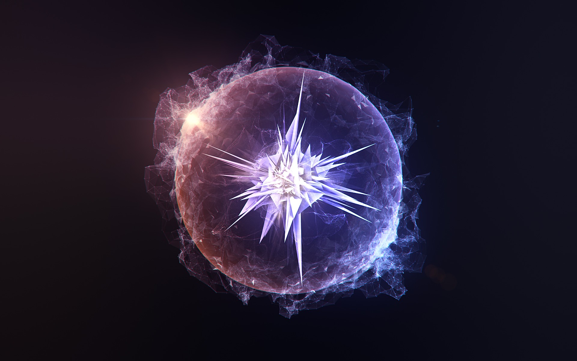 Description: A star in the center of a purple sphere with a black background and a blue background with a white star.