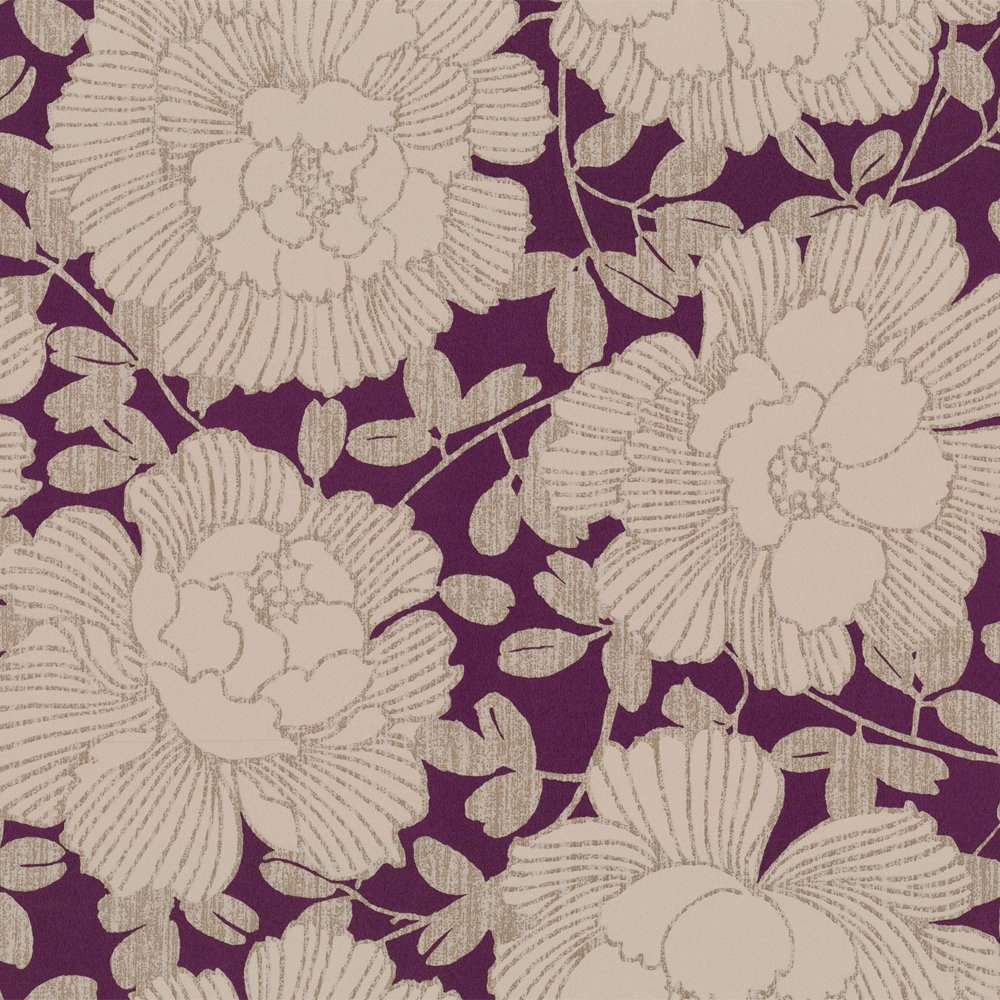 Description: A purple and white flower pattern on a purple background with leaves and flowers on it.