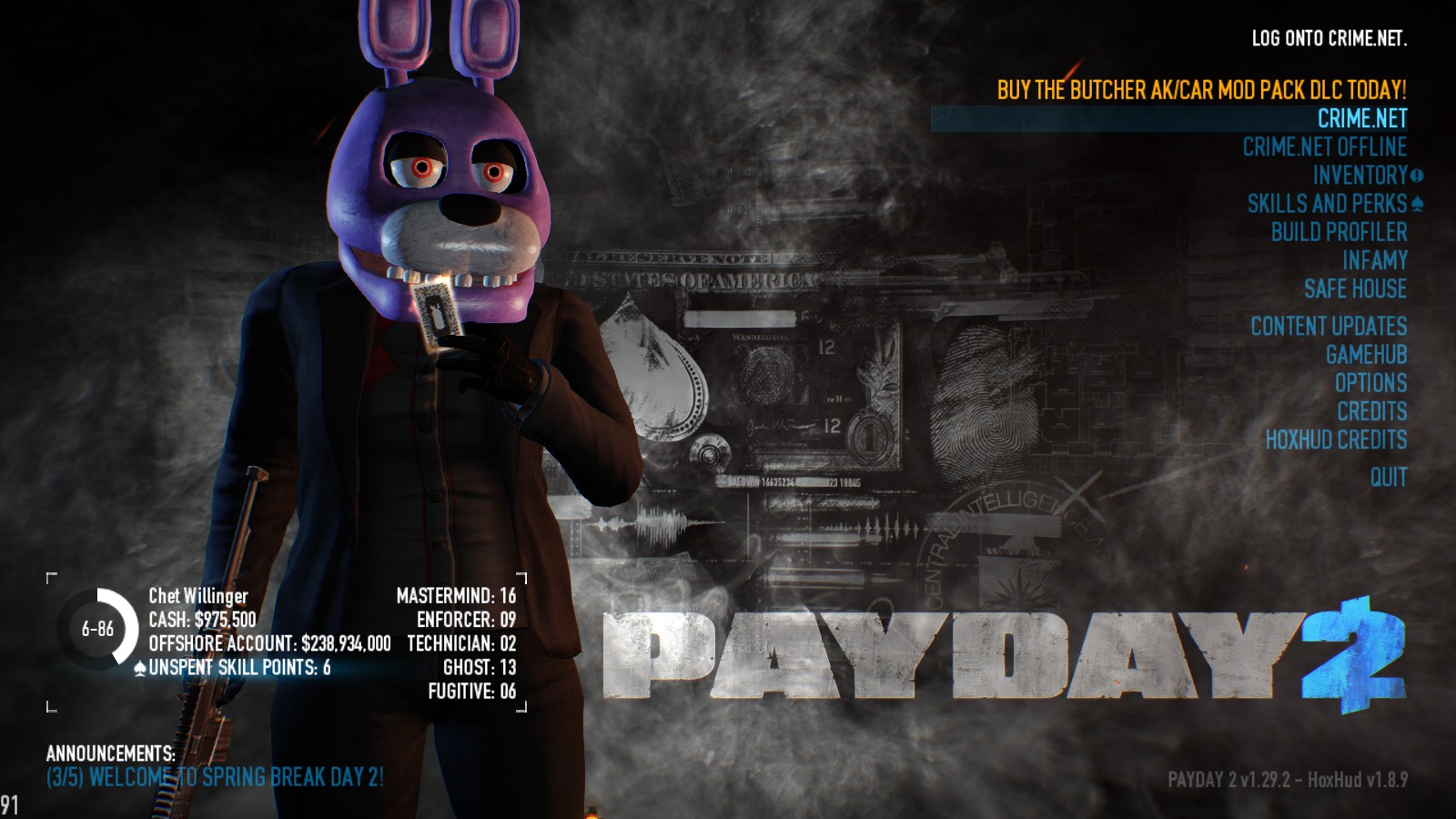 Description: A rabbit is holding a gun in a dark room with a text description below it that reads payday.