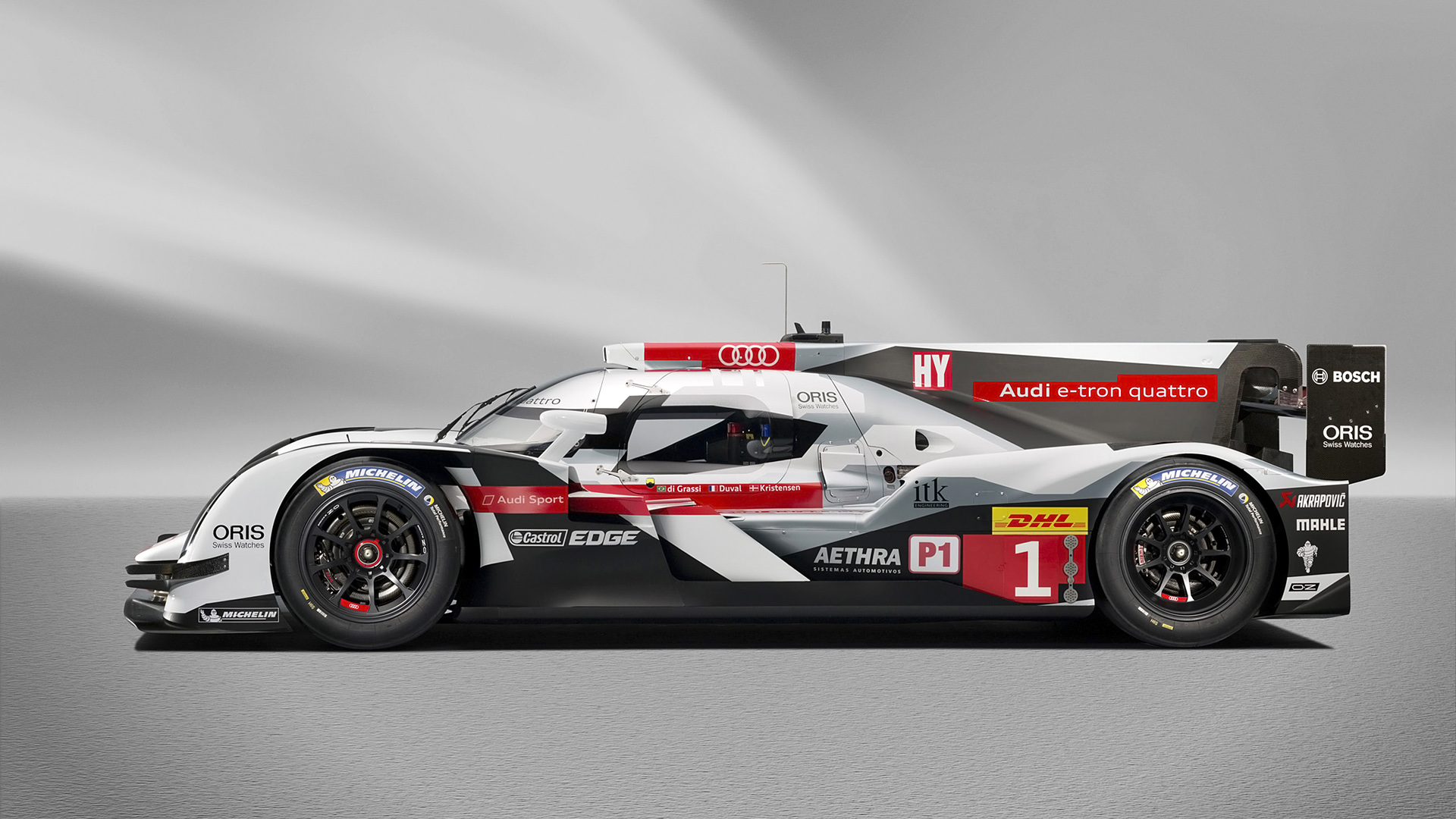 Description: A race car is shown in a studio photo with a gray background and a red and white stripe on the side.