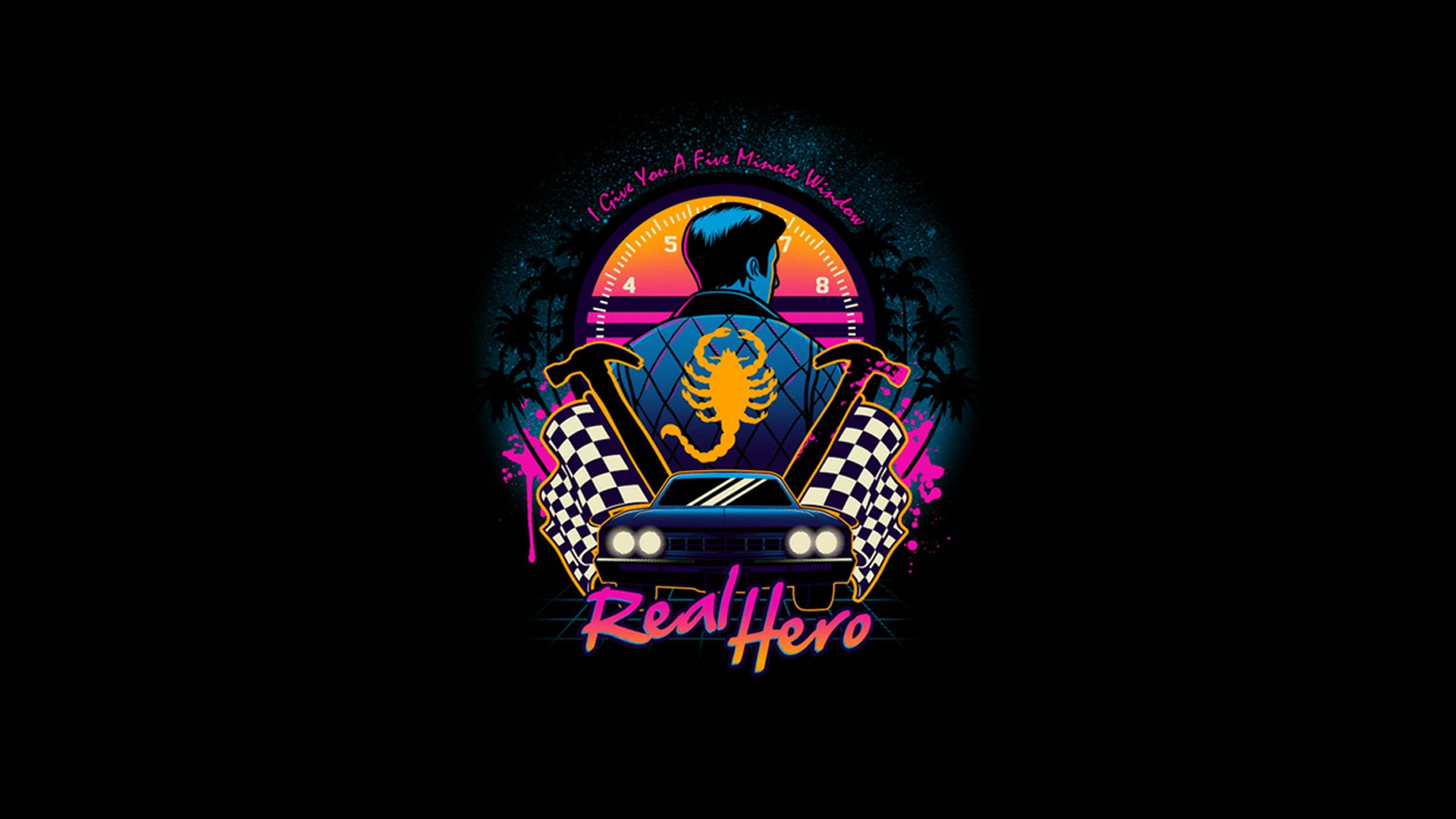 Description: A car with a racing theme on it's side and a person in the background with a car.