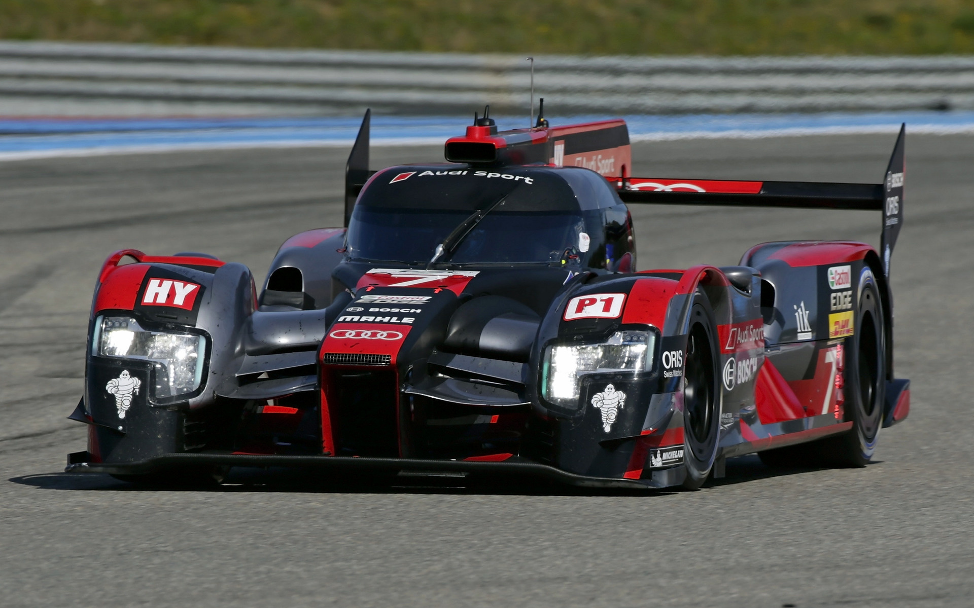Description: A racing car driving on a race track with a number on the front of it's car and a number on the back of the car.