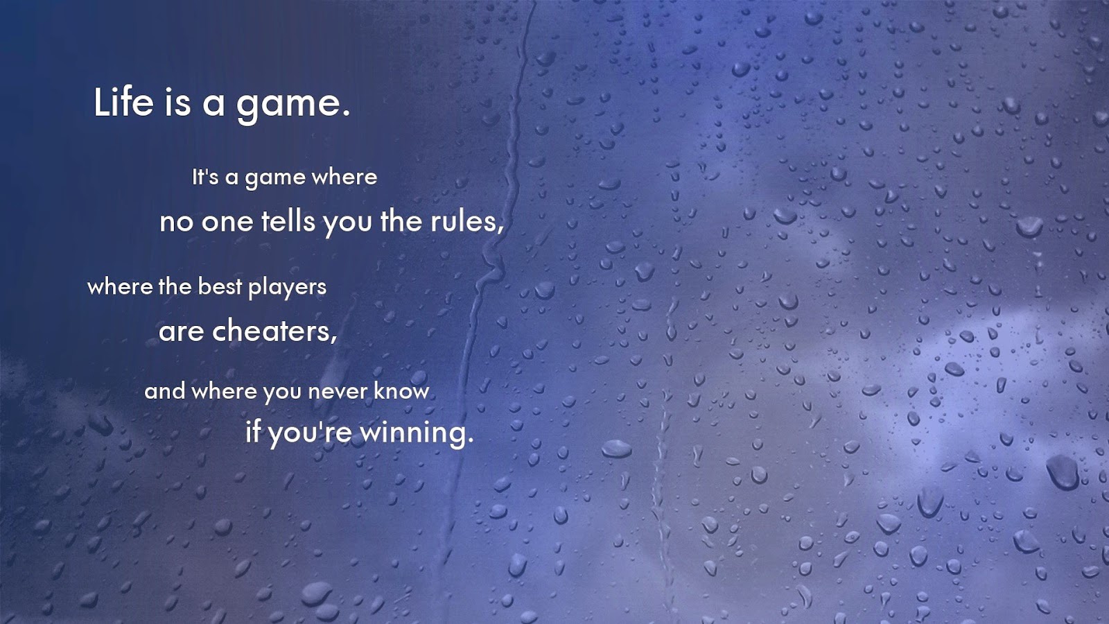 Description: A picture of a rain covered window with a quote about life is a game it's a game where no one tells you the rules.