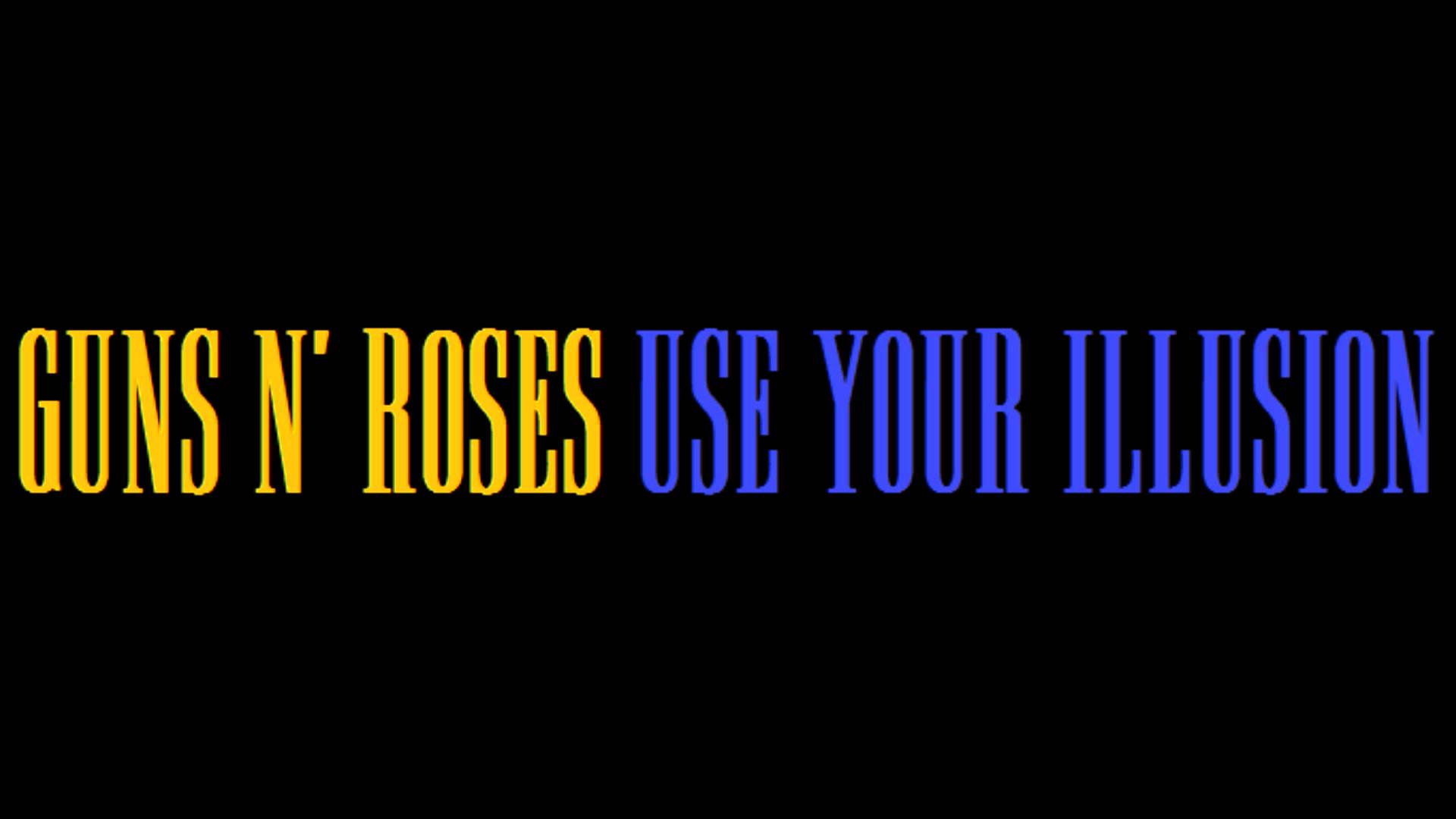 Description: A rainbow colored text that reads guns'n roses use your illusion to make a rainbow effect on a black background.