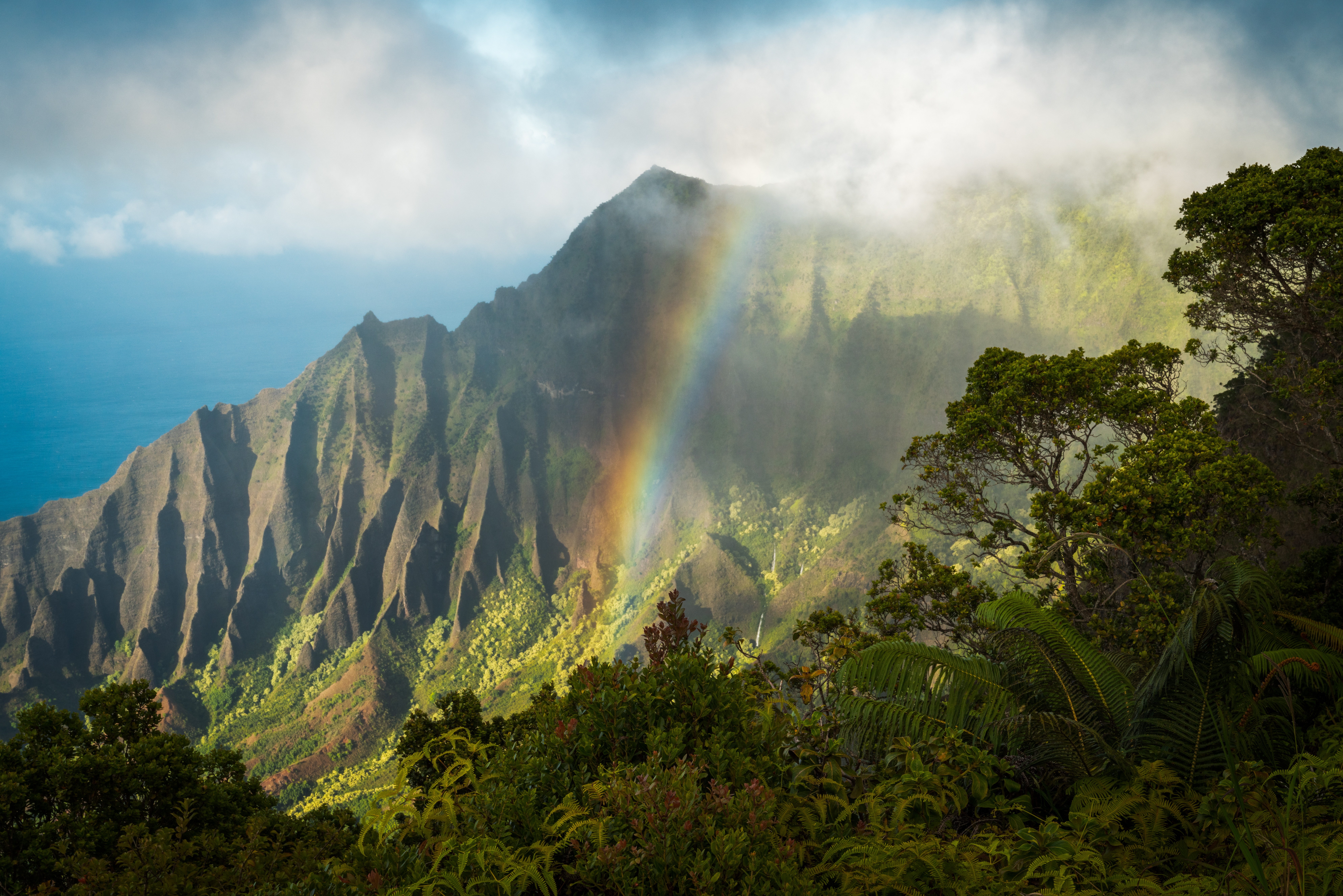 Description: A rainbow is seen over a mountain range in the distance.