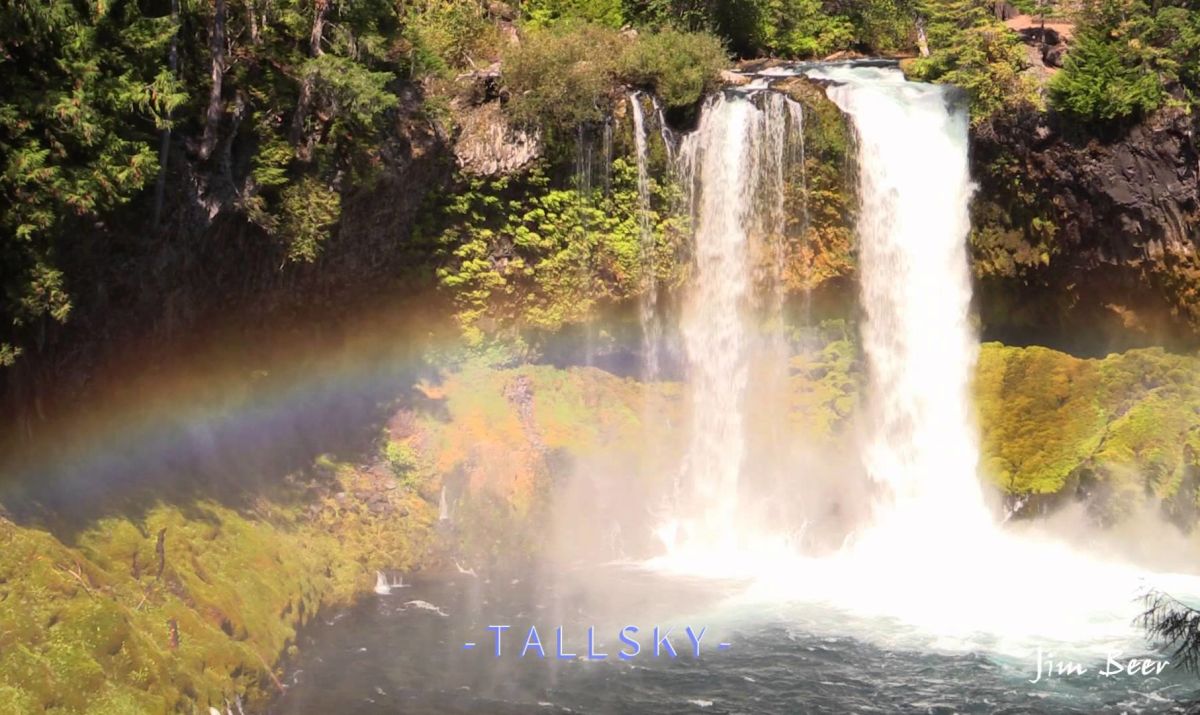 Description: A rainbow is in the sky over a waterfall and a rainbow is in the water below it and a rainbow is in the sky above it.