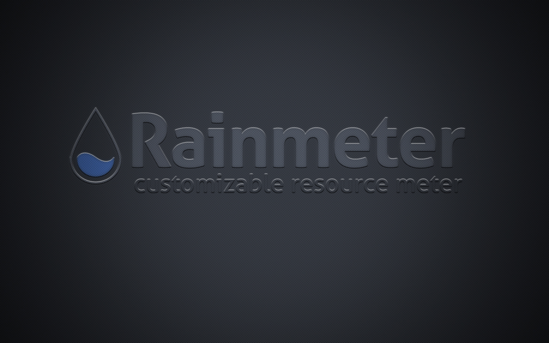 Description: A rainmeter logo on a black background with a blue drop of water in the center of the logo.