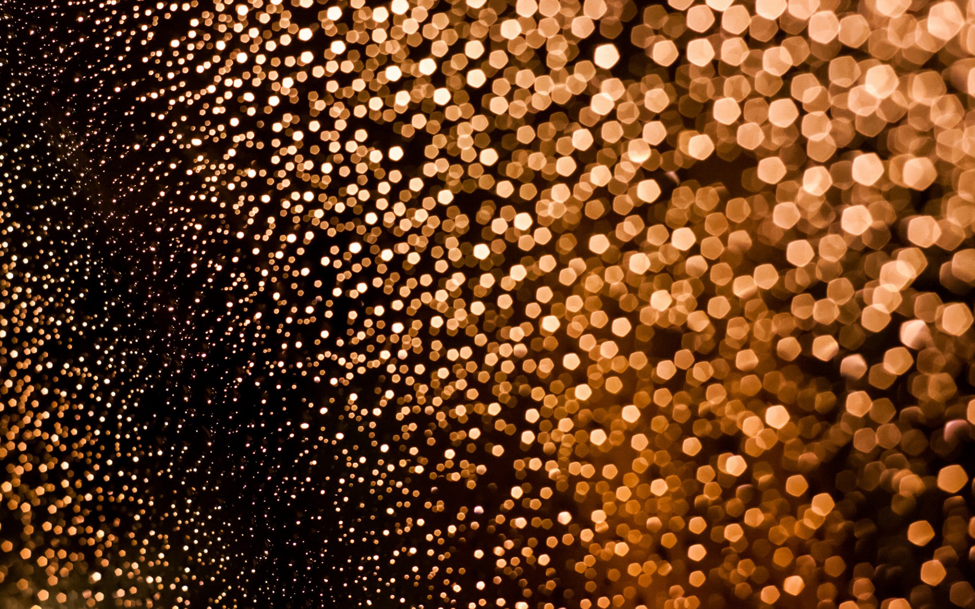 Description: A close up of a rain covered window with a blurry background of circles of light on the glass.