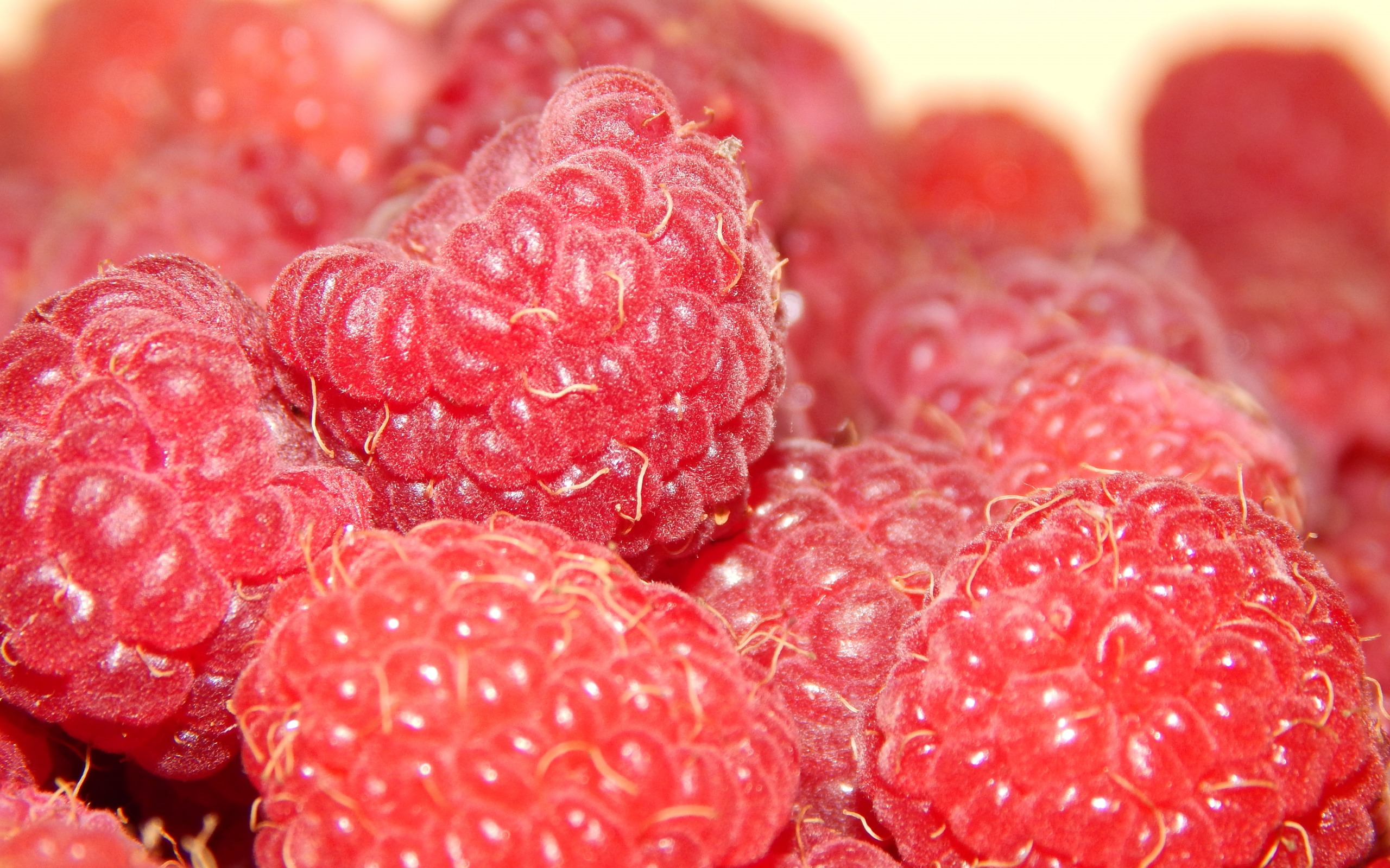 Description: A close up of a bunch of raspberries on a white surface with a white background and a white background.