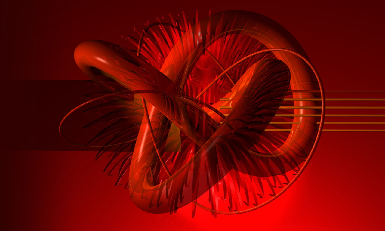 Description: A red abstract background with a red and black design on it's side and a red and yellow background with a red and black design on the side.