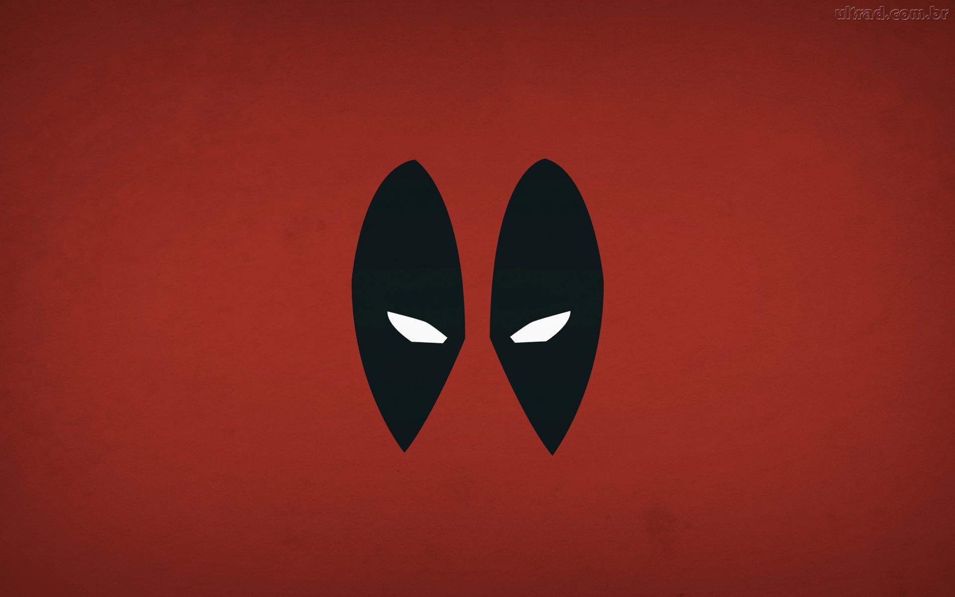 Description: A red background with two black faces with white eyes and a black nose with a red background with a black outline.