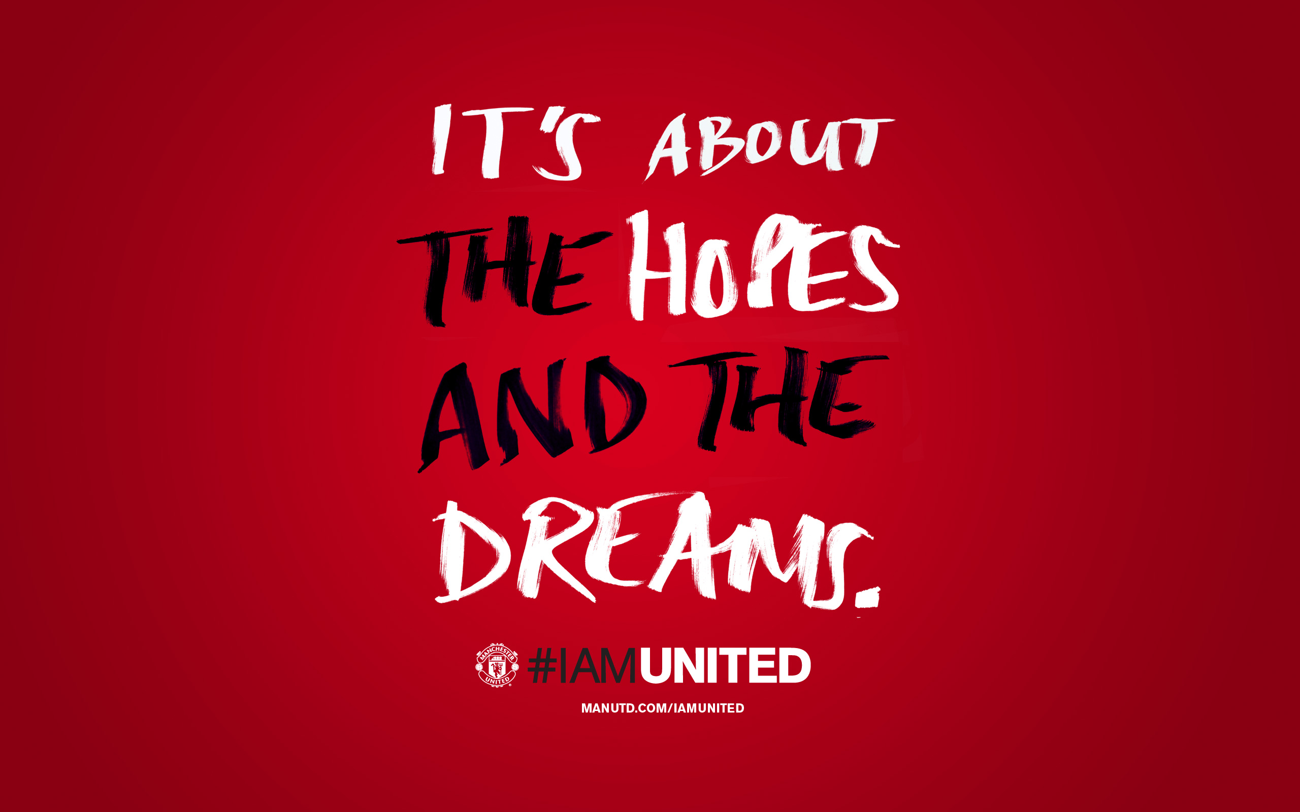 Description: A red background with a quote that says it's about the hopes and the dreams of ham united.