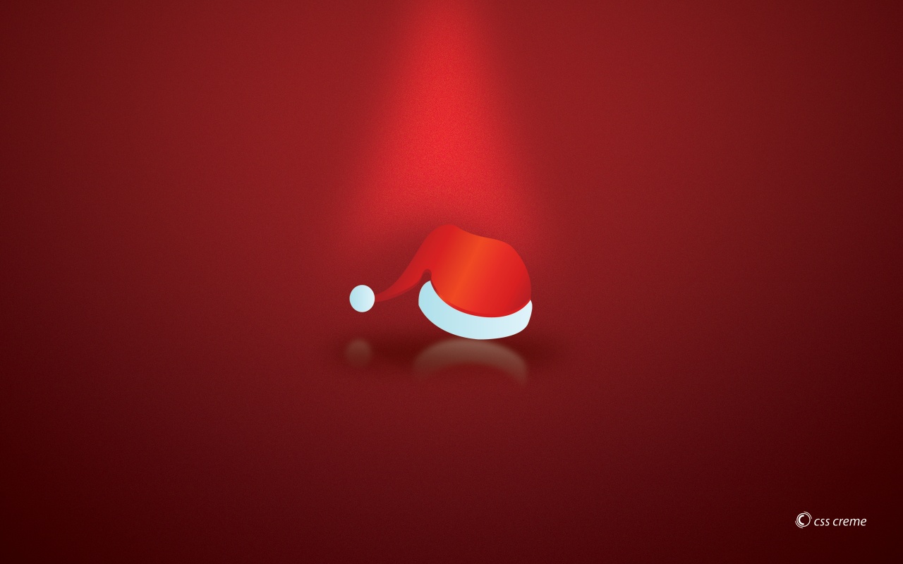 Description: A red background with a white and red santa hat on it's head and a red ball in the middle.