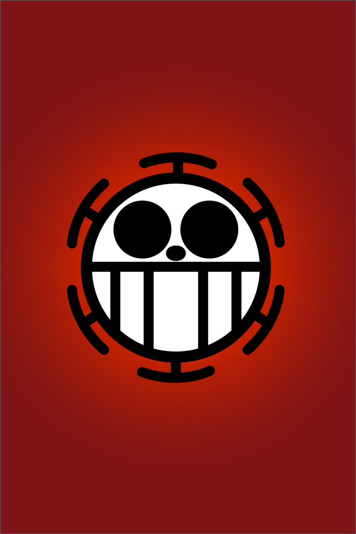 Description: A red background with a black and white image of a smiling skeleton with eyes and a crossbone on it.