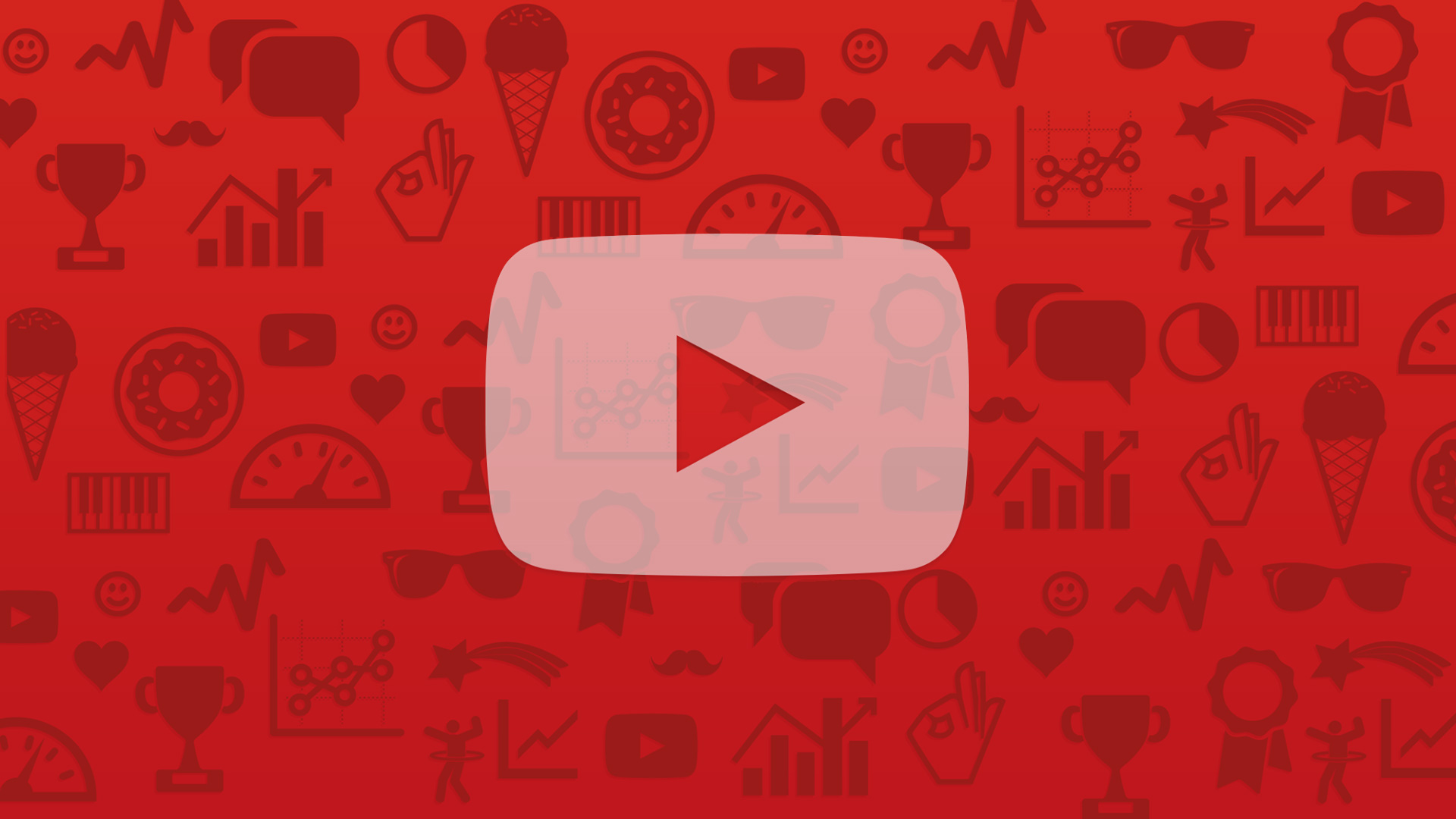 Description: A red background with a video player surrounded by icons of food and drinks and a heart on the bottom.