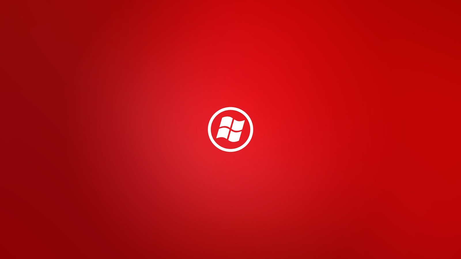 Description: A red background with a white logo on it's side and a white circle on the bottom of the image.