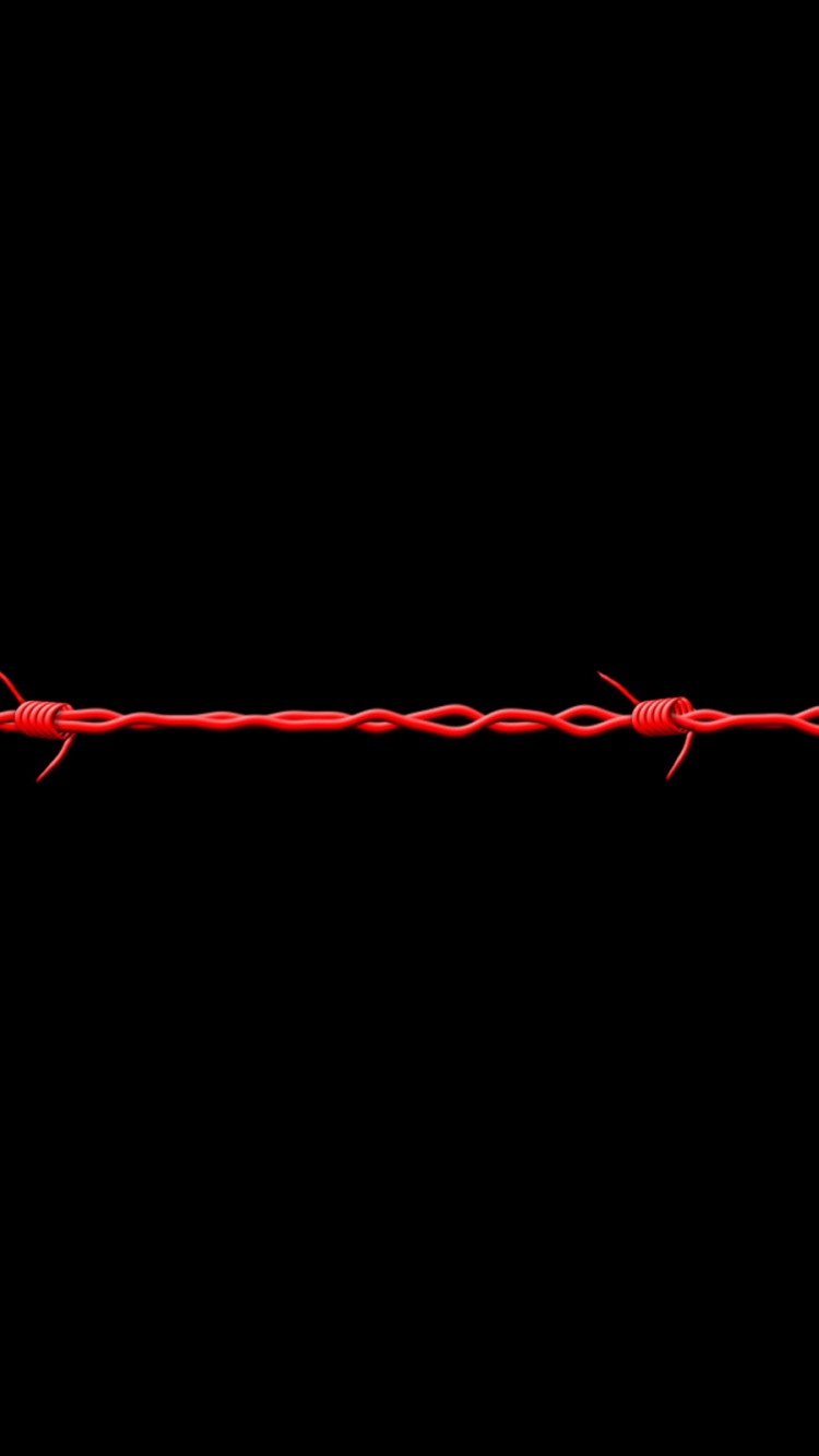 Description: A red line of barbed wire against a black background with a red light on top of it and a red light on the bottom of the line.