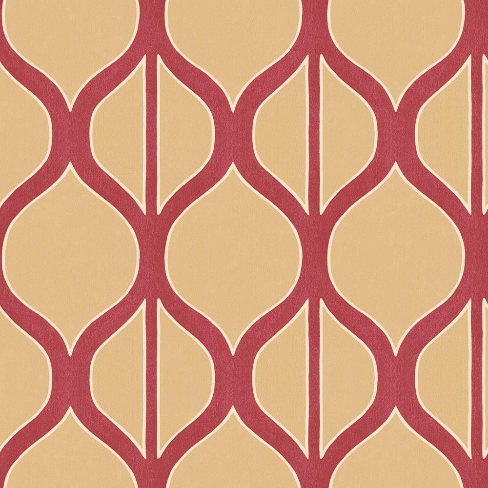 Description: A red and beige wallpaper with a geometric design on it's side.