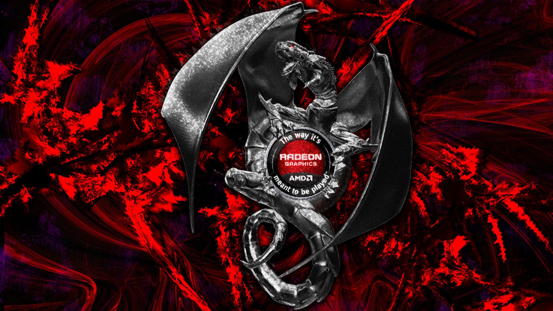 Description: A red and black abstract background with a knife and a logo on it that says.