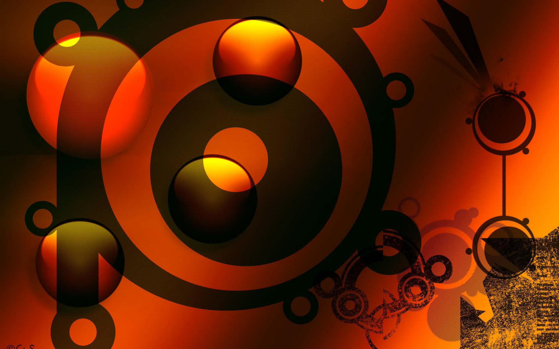 Description: A picture of a red and black background with circles and arrows on it and a building in the background.