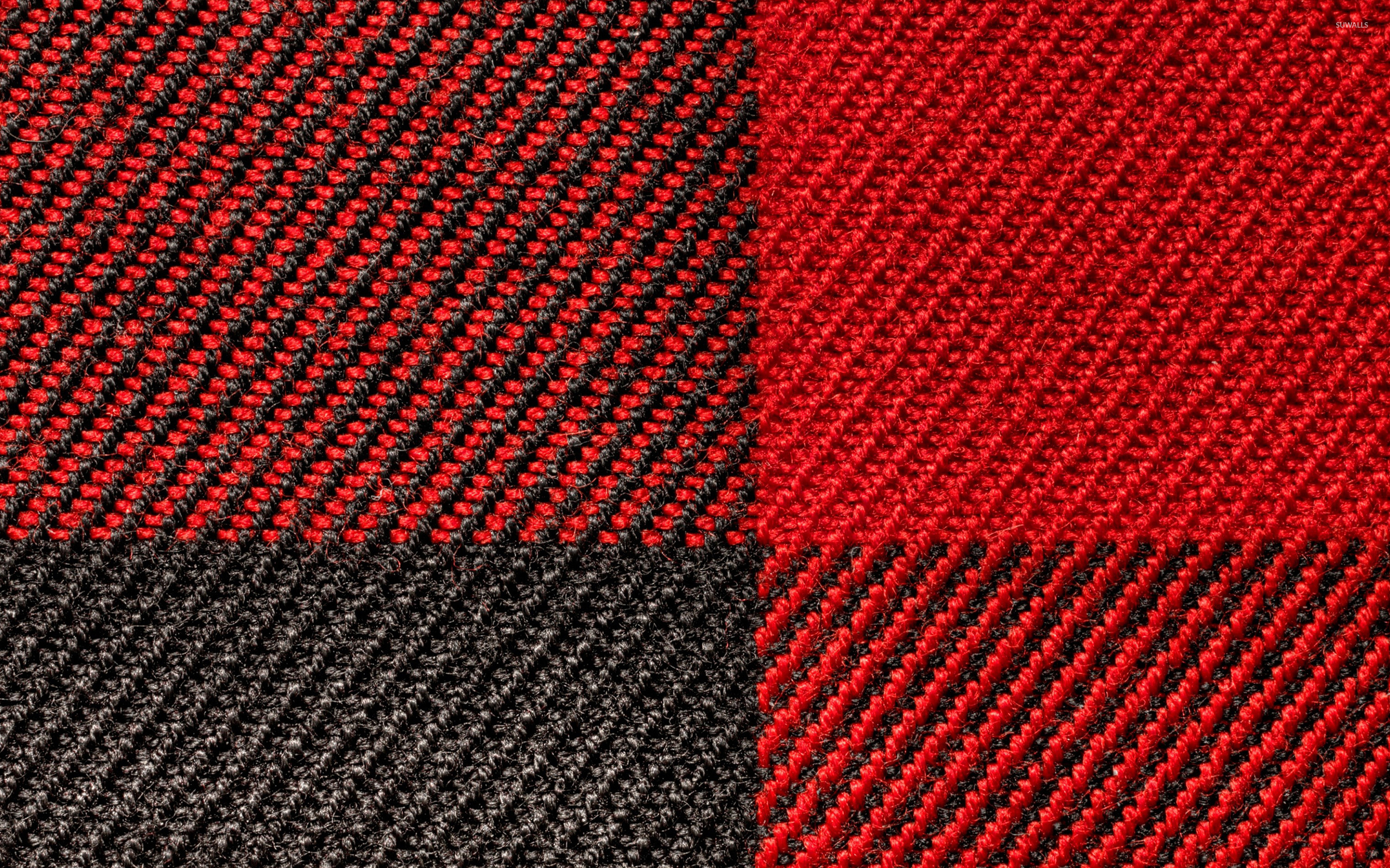 Description: A close up of a red and black checkered fabric textured with a diagonal pattern of squares and stripes.