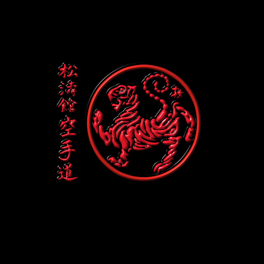 Description: A red and black picture of a dragon on a black background with chinese characters on it's side.