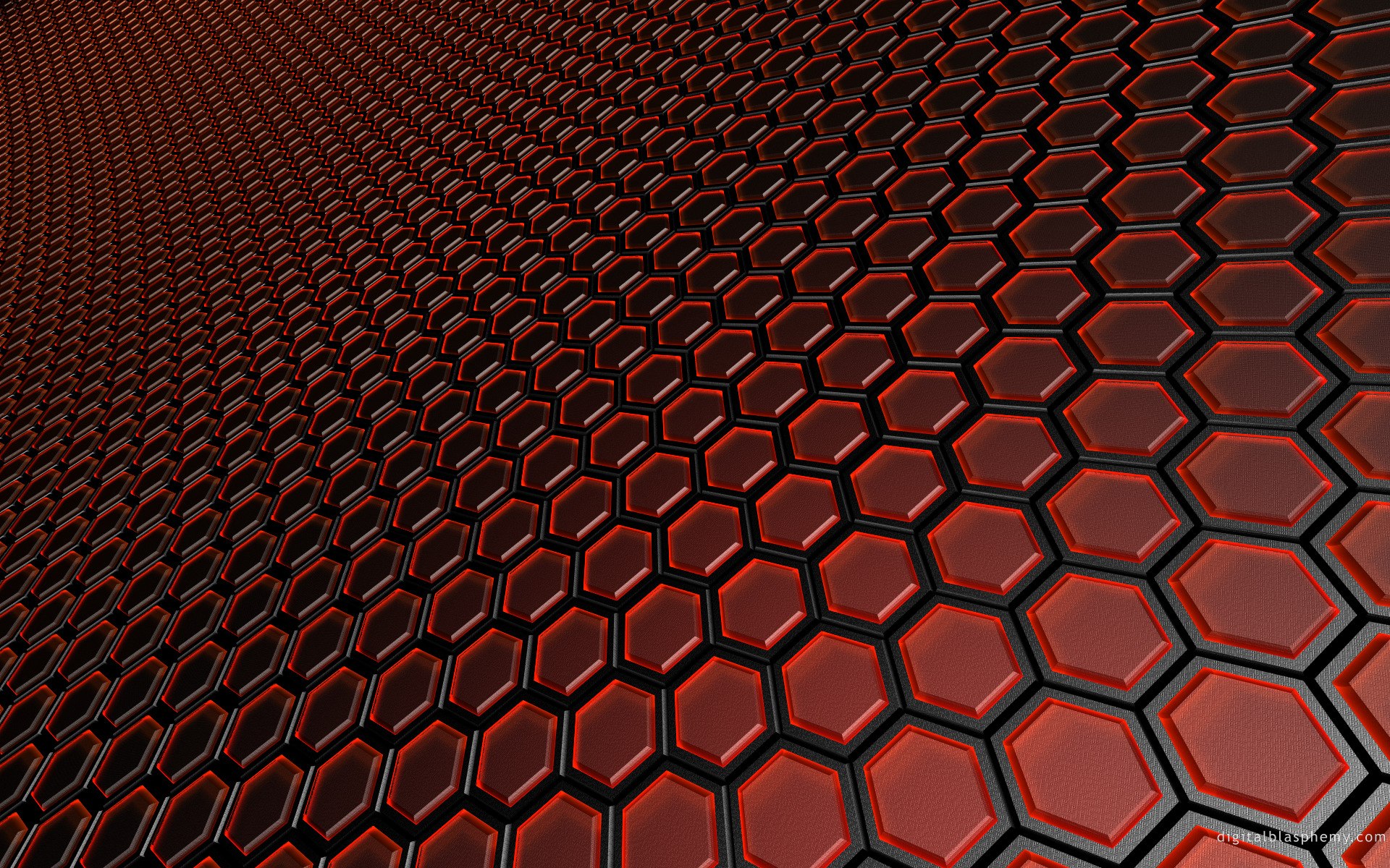 Description: A red and black background with hexagonal shapes and a black background with hexagonal shapes and a red background.