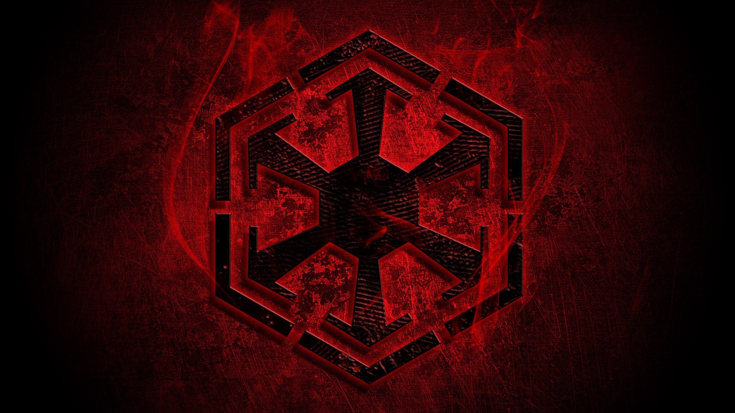 Description: A red and black wallpaper with a star wars symbol on it's side and a red background.