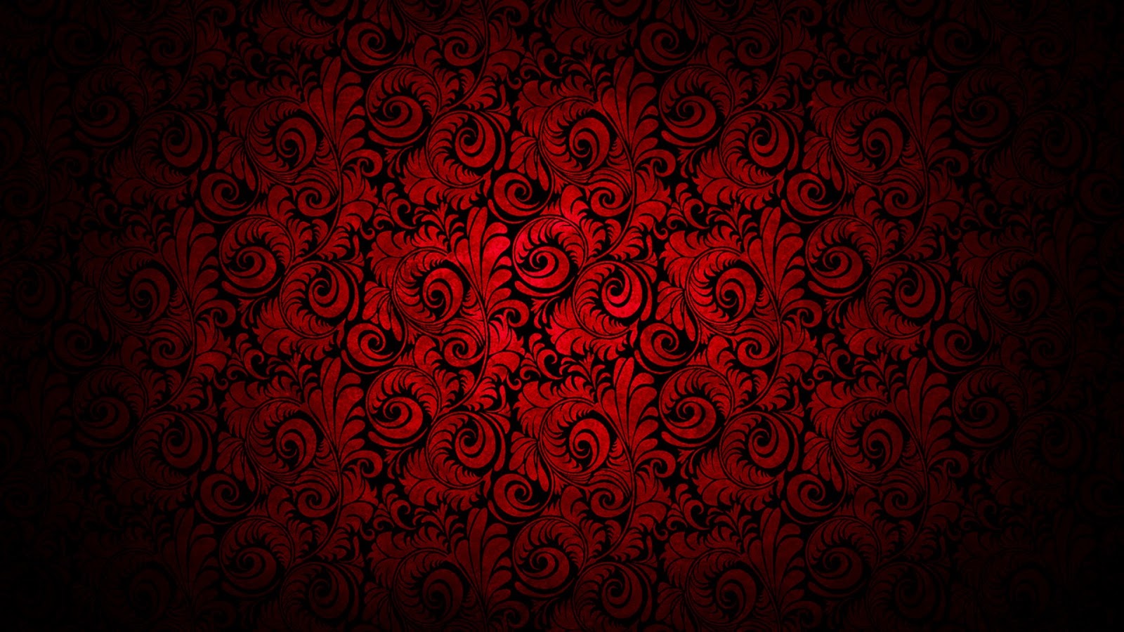 Description: A red and black wallpaper with swirls and leaves on it's side.