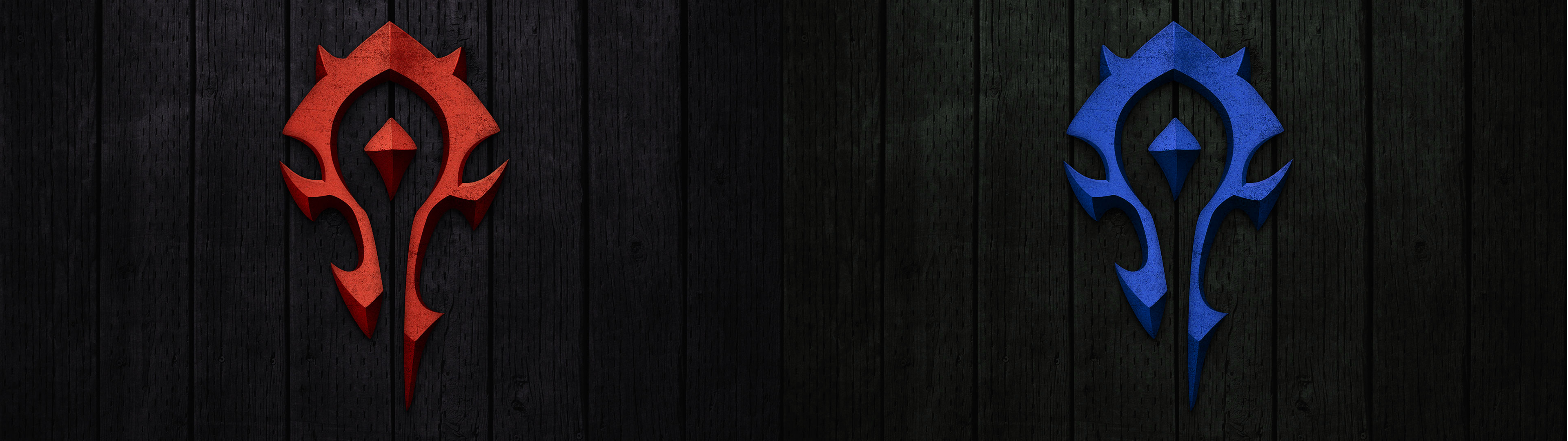 Description: A pair of red and blue metal door handles on a wooden wall with a black background and a dark wood wall.