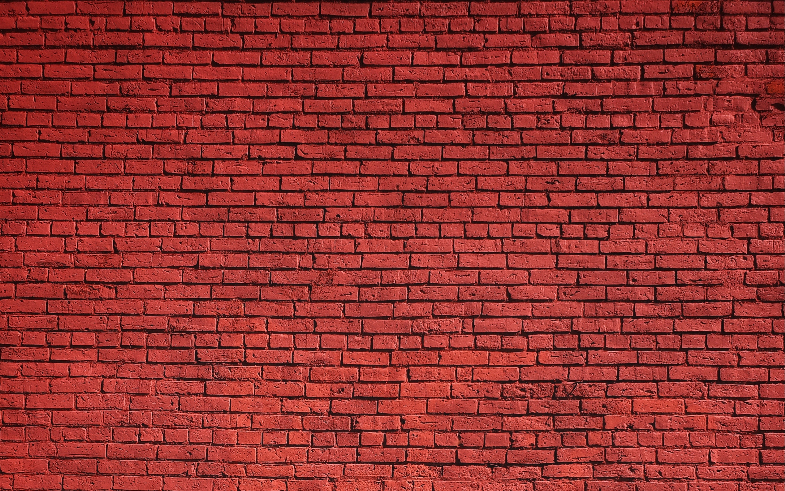 Description: A red brick wall with a bench in front of it and a red brick wall behind it with a bench in front of it.