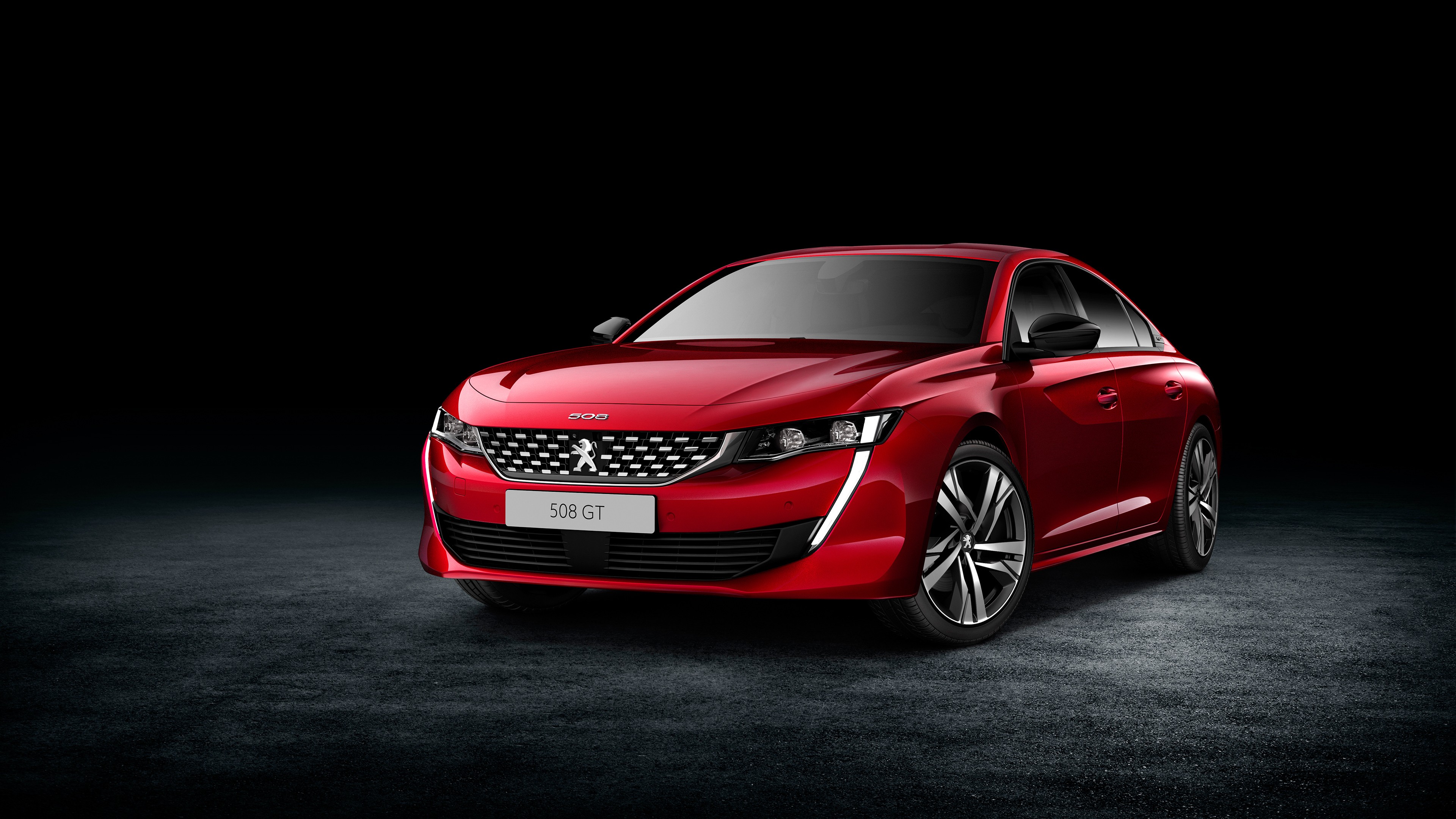 Description: A red car is shown in a dark room with a black background and a black background behind it is a black background.