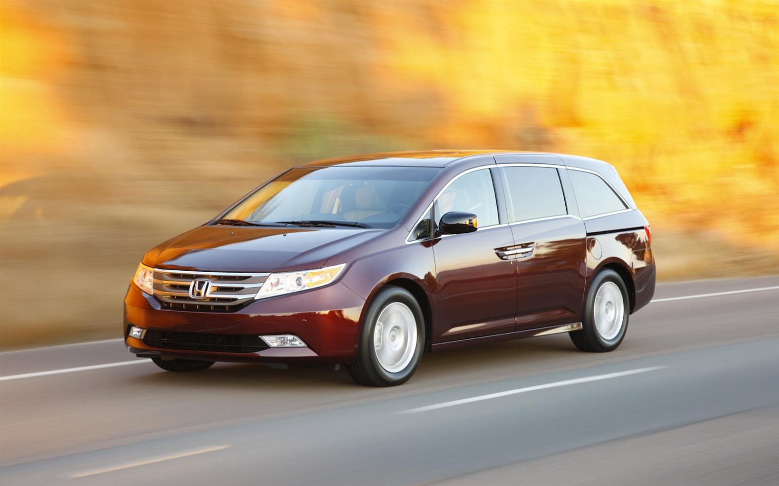 Description: A red car driving down a road next to a hillside with a yellow tree in the background and a blurry background.