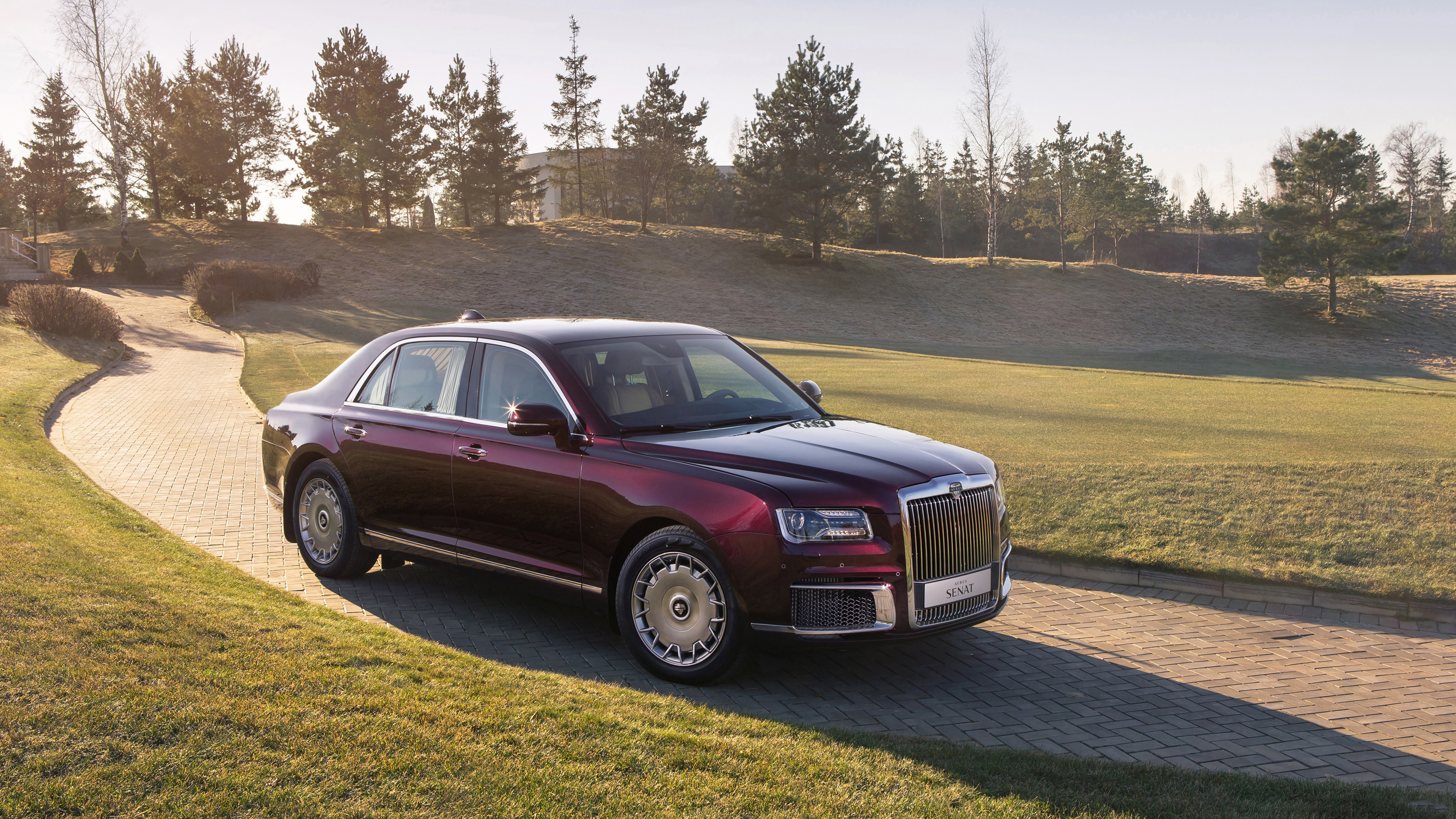 Description: A red car parked on a road near a grassy field and a hill with trees in the background and a grassy hill with a path.